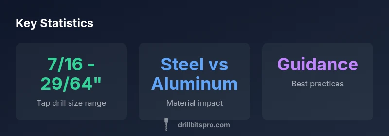 In tapping, the notation 1/2-13 UNC describes a half-inch nominal diameter with 13 threads per inch, a common coarse thread used in metalworking. The tap drill size is the hole diameter drilled before threading; for 1/2-13 UNC, the standard tapping charts typically show a target range around 7/16 inch to 29/64 inch. This accounts for thread depth, crest form, and relief, aiming for strong engagement without bottoming the tap. For DIYers and professionals, selecting the right drill size reduces tool wear and yields cleaner threads. According to Drill Bits Pro analysis, starting near the lower end of the range and validating fit on a scrap piece often yields reliable results. Always consider lubrication, machine alignment, and drill quality when planning a tapping operation.