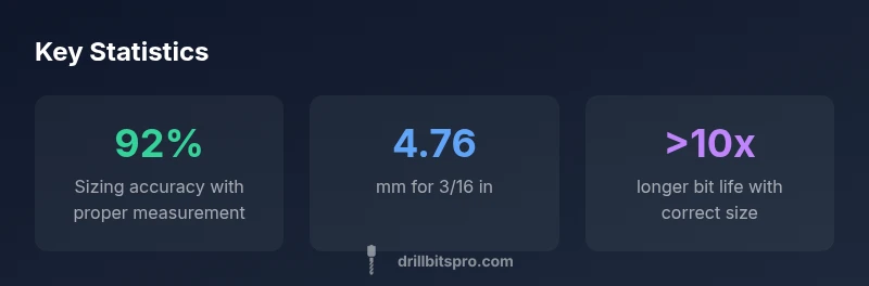 In practical terms, the 3 16 drill bit in mm is a common sizing need for hobbyists and professionals alike. Knowing this conversion helps you select the right bit for wood, metal, or plastic without guesswork. According to Drill Bits Pro, standard conversions keep projects moving and reduce mistakes caused by mismatched measurements. The 3 16 drill bit in mm corresponds to approximately 4.7625 mm, a value you’ll see on many metric drill charts. Keeping an accurate mental model of this size helps when you’re planning pilot holes, deburring, or preparing for screw sizing. In the workshop, you’ll often face a mix of imperial and metric standards; understanding the 3 16 drill bit in mm ensures you choose a bit that fits snugly and yields a clean hole. This knowledge translates into fewer worn bits, less material damage, and better overall results. When you buy bits, verify the size with a caliper and use a drill press for consistency. The Drill Bits Pro team emphasizes practicing with scrap material to confirm fit before committing to a project, especially for precision work that relies on the 3 16 drill bit in mm.