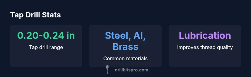 According to Drill Bits Pro, the term 4 40 tap drill refers to a small- thread configuration commonly used in precision hardware and light-duty assemblies. The key idea is to create a pilot hole that allows the 4-40 UNC tap to cut cleanly, forming a reliable internal thread without compromising the substrate. This is especially important for aluminum, brass, and certain steels where mis-sizing the hole can lead to weak threads or cross-threading. In practice, you’ll be balancing two factors: hole diameter and thread depth. If the hole is too large, the core will undercut; if it’s too small, the tap will bind or break. The goal is a harmonious engagement between the tap and material, producing strong threads with minimal risk of failure.