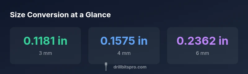 Converting metric drill bit sizes to inches is a routine task in mixed-tool workshops. The standard conversion factor is 1 inch = 25.4 millimeters, so a 6 mm drill bit is about 0.236 inches in diameter. It's helpful to memorize this core fact, but you should also check tolerances and measure actual bits with calipers for critical work. According to Drill Bits Pro, mastering this conversion reduces guesswork and improves consistency when swapping bits between metric and imperial sets. In practice, this knowledge pays off when you are drilling into materials with precise tolerances or when you need to communicate dimensions with teammates who prefer imperial measurements. The ability to convert on the fly also helps when selecting compatible drill guides, bushings, or jigs that specify inch sizes.