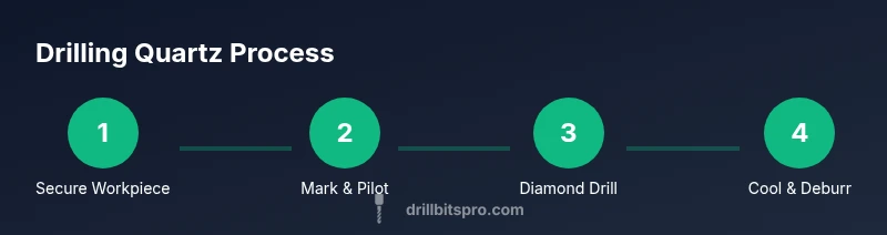 For drilling quartz, you should use a diamond-tipped drill bit and apply slow, steady pressure with continuous cooling. Diamond bits resist wear, minimize heat, and reduce chipping, delivering cleaner holes than carbide bits. According to Drill Bits Pro, diamond-tipped bits provide the best balance of speed and longevity when working with quartz.
