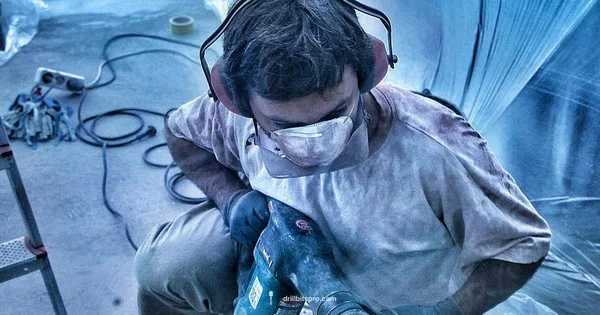 Dust control is important; use a dust extractor or wet drilling.