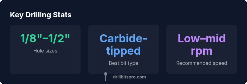 | Carbide-tipped masonry bit | General concrete holes | 1/8in to 1/2in |