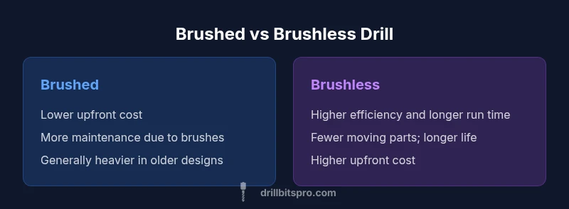In the world of portable power tools, the decision between brushed and brushless drill motors drives not only upfront price but long-term performance, reliability, and battery efficiency. This choice affects how often you’ll stop to recharge, how hot the tool runs under load, and how long you’ll keep the device before replacing it. For a brushed versus brushless drill comparison geared toward DIY enthusiasts and professionals, the practical question isn’t which is newer, but which delivers the right balance of power, endurance, and cost for your typical workload. The Drill Bits Pro team emphasizes that the best choice hinges on usage patterns: light, occasional tasks may favor the budget-brushed option, while frequent, heavy-duty drilling rewards a brushless build with superior efficiency and longevity. Understanding the tradeoffs helps you avoid overpaying for features you won’t use and prevents buying into an approach that won’t hold up under your typical workload.