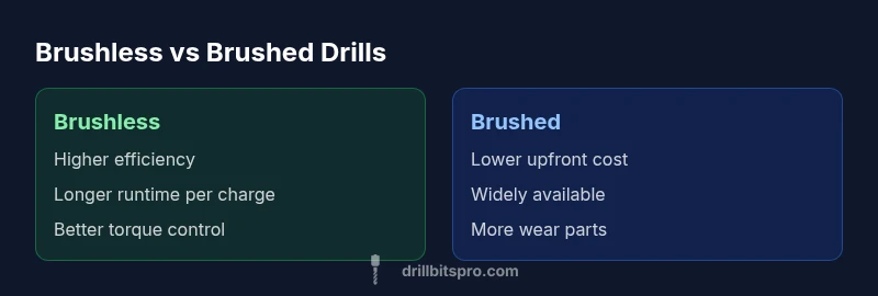According to Drill Bits Pro, the decision between brushless drill vs non brushless should be anchored in how you intend to use the tool. If you work on frequent, demanding jobs, the efficiency and longevity of a brushless drill often justify the higher price. For occasional tasks or tight budgets, a reliable brushed drill can still handle most home projects without breaking the bank. The key is to align capabilities with your workload and ecosystem, not just the headline specs.