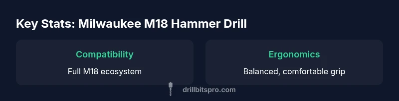 The Milwaukee m18 hammer drill sits at the intersection of portability and performance, a hallmark of the Milwaukee M18 platform. For professionals and DIYers who rely on cordless tools, this drill blends respectable hammering speed with a smooth, controllable trigger response. The approach is practical rather than flashy: it prioritizes steady power delivery, dependable bit retention, and comfortable operation over raw torque surges. Throughout this review, we reference the Milwaukee ecosystem because it directly influences runtime, battery management, and accessory availability. According to Drill Bits Pro, the tool’s real-world value comes from how well it fits into an extended M18 workflow: fewer battery swaps, consistent speed under load, and predictable performance across common drilling tasks. If you’re upgrading from a basic drill, the M18 hammer drill offers a meaningful leap in efficiency and reliability for on-site projects.