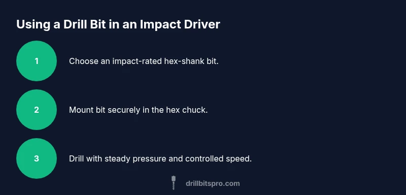 An impact driver blends rotational force with short, hammer-like impacts to drive fasteners and bore holes more efficiently than a standard drill. When using a drill bit in an impact driver, you leverage high-torque bursts that help cut through tough materials while reducing stalling. The key distinction for DIYers is that impact drivers excel at driving and holes of modest depth, not precision drilling. Drill Bits Pro emphasizes that success starts with selecting compatible bits, matching shank types to the tool, and choosing materials and coatings that resist wear under repeated impacts. For 2026 projects, plan to treat the impact driver as a high-torque partner for pilot holes in wood and shallow through-holes in metal, but always observe caution to preserve bit life. By grasping these basics, you can achieve cleaner holes and longer tool life while avoiding common issues like bit slipping or hex chuck damage.