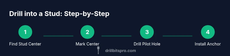 The Drill Bits Pro team recommends following a deliberate, step-by-step approach to drilling into a stud. Prioritize accuracy in locating the stud center, use a sharp bit, and practice depth control. When done correctly, you’ll achieve secure anchors with clean holes, minimal wall damage, and fewer rework cycles. With the right preparation and technique, mounting fixtures becomes straightforward rather than intimidating. The Drill Bits Pro team believes this method offers consistent, repeatable results for both DIY projects and professional work.