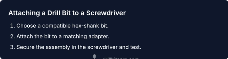 Learn how to safely attach a drill bit to a screwdriver using adapters, with clear steps, safety tips, and practical guidance for wood, metal, and plastic tasks.