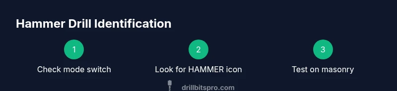 In short, you can tell if a drill is a hammer drill by checking the mode switch or hammer icon and by testing on masonry. A hammer drill combines rotation with a percussive hammer action. If your drill has a dedicated hammer setting (often labeled HAMMER or with a hammer icon) and a percussion rating, it is a hammer drill. When in doubt, consult the model specs.