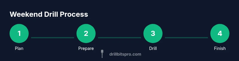 According to Drill Bits Pro, weekend drill projects unlock real efficiency when approached with a clear plan and the right gear. The goal is to convert a handful of spare hours into solid results without overcomplicating the task. Weekend drilling is ideal for small repairs, furniture assembly, or mounting hardware where accuracy matters more than brute force. By framing your job as a short, repeatable workflow, you reduce setup time, limit material waste, and stay motivated as you see tangible progress. For DIY enthusiasts and professionals alike, mastering a reliable weekend drill routine translates to fewer trips to the hardware store and more time enjoying your finished project.