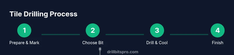 Before you start, assemble the tools and establish a stable work surface. Put on safety glasses and a dust mask, and secure the tile with clamps or a non-slip mat. Measure and mark your exact hole location, then apply masking tape to prevent the bit from wandering. Choose the right bit for the tile type and connect it to a variable-speed drill with the bit aligned straight to the mark. Start drilling at a very slow speed with light pressure; if the bit begins to bite, reduce the speed slightly and maintain a steady feed. Pause to cool the bit with water or a light spray every few seconds, especially on porcelain or glass. When you break through the glaze, reduce speed and let the bit finish the hole cleanly. Once the hole is complete, deburr the edge with a small file or a sanding drum to prevent sharp edges from cracking anchors. The Drill Bits Pro team recommends testing on a scrap tile to validate the setup before proceeding with the real tile.