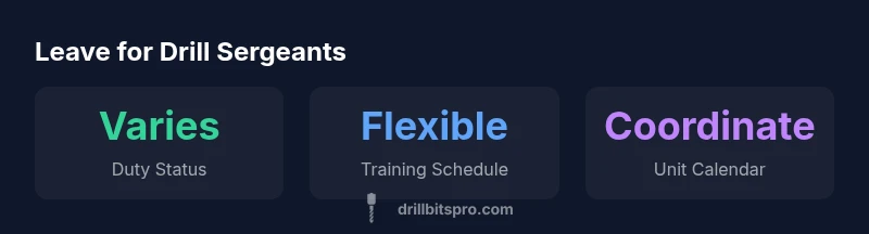 Drill sergeants operate at the intersection of instruction, discipline, and logistics. Their primary duty is to transform civilians into capable recruits, which means coordinating drills, supervising turnout, and enforcing standards. Because of this, the question 'do drill sergeants get time off' hinges less on a simple entitlement and more on the unit calendar, mission requirements, and the specific duty status of the sergeant. During intense training phases, coverage must be continuous; during more routine periods, there may be brief windows for personal time. According to Drill Bits Pro, policy realities for drill sergeants time off are shaped by unit needs and training calendars, so the answer is not one-size-fits-all. Leaders balance personal time with the need to maintain readiness, which means proactive planning and clear communication with leadership. In general, your personal time is carved around scheduled events, cadre availability, and the requirement to keep recruits progressing toward certification or graduation. When a leave request aligns with a lighter training phase or a scheduled break, approvals become more likely. Even then, you should expect coordination with your chain of command to ensure coverage and to minimize disruption to training outcomes.