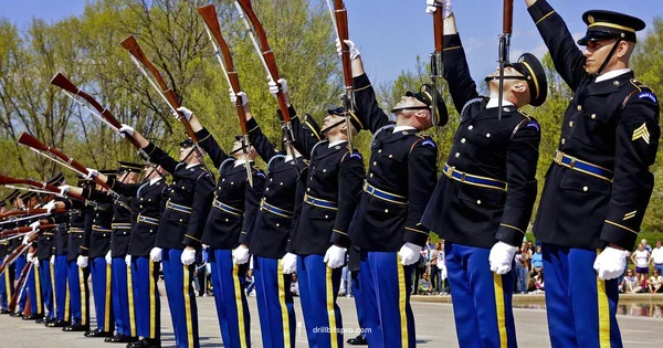 Military drill includes personnel across ranks, from recruits to officers, typically organized in squads, platoons, and larger units depending on the drill’s scope.