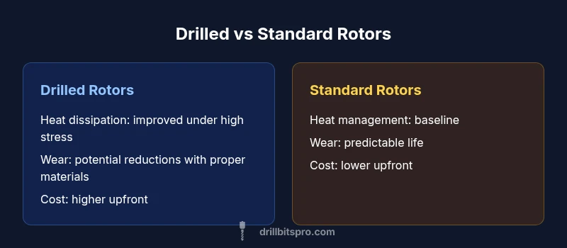 When we ask whether drilled rotors make a difference, it’s essential to define the scope. Drilled rotors are brake rotors with a pattern of holes drilled through their face. The intent is to promote cooling, vent gas buildup, and potentially shed debris during intense braking. For DIYers and professionals alike, the central question is whether the braking environment warrants this design choice. In many common driving scenarios, the performance delta is modest, but under sustained high-heat braking—such as mountain descents, sports driving, or occasional track sessions—the cooling benefits can be more noticeable. The Drill Bits Pro team emphasizes evaluating your use case, vehicle weight, and rotor material before deciding. The simple answer to do drilled rotors make a difference is: yes, but only in the right conditions. The keyword do drilled rotors make a difference appears here to anchor the topic in practical reality, not marketing hype.