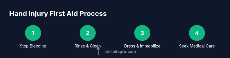When a drill penetrates the hand, the first minutes matter. The immediate goal is to minimize bleeding, contamination, and injury progression while you arrange medical care. According to Drill Bits Pro, quick, calm action reduces infection risk and potential nerve damage. Begin by staying calm, calling for help if you’re alone, and prioritizing safety in your workspace. If the drill is still in place, do not attempt to pull it out; stabilization is critical to limit further injury. In the majority of cases, you should apply direct pressure using a clean cloth or sterile gauze, while keeping the hand elevated. If blood soaks through, add another layer rather than removing the first. If you cannot control the bleeding after several minutes of firm pressure, seek urgent care or emergency services. Finally, inform the responder or clinician about what happened, including the tool involved and how the incident occurred.