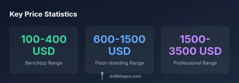 Prices for drill presses vary widely by type and features. A typical benchtop unit may start around $100–$400, mid-range benchtops $400–$800, floor-standing presses commonly $600–$1,500, and professional-grade machines can exceed $1,500 to $3,000. For DIYers and pros, budgeting for total cost—including accessories—helps avoid surprises.