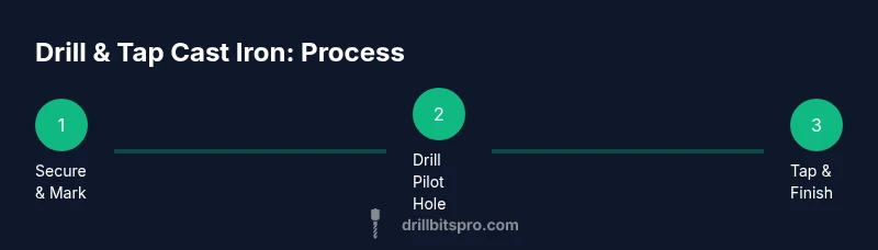 Before touching the steel, ensure you have the right tools and a stable work surface. Cast iron benefits from a sharp high-speed steel (HSS) or carbide-tipped drill and a high-quality thread tap. Lubrication reduces heat and helps chips escape, preserving the drill edge and reducing friction that can work-harden the surface. A sturdy vise, a flat drilling surface, and a drill press or a slow-speed drill with a stable chuck are ideal. According to Drill Bits Pro analysis, patience during setup yields better hole accuracy and cleaner threads than rushing through the process. Always dress and deburr edges after drilling to prevent crack initiation and to ensure a clean thread.