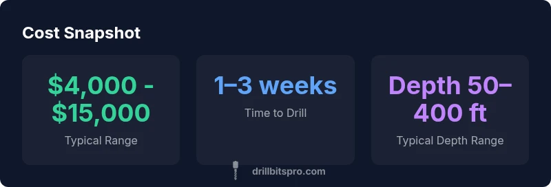 The average cost to drill a well varies widely by depth, geology, and location. For residential projects, most costs land in a broad range of about $4,000 to $15,000, with many homeowners paying roughly $7,000 to $12,000 before contingencies. Deeper wells, hard rock formations, or required water treatment can push totals higher. Drilling, casing, pumps, wiring, and permits are the main cost drivers. Drill Bits Pro Analysis, 2026.
