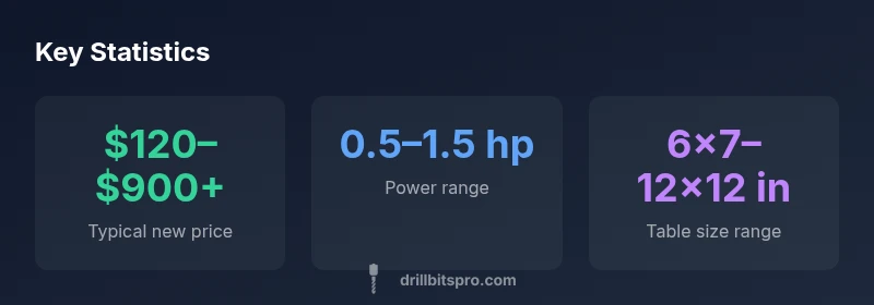 For most DIYers, a new benchtop model starts around $120–$250. Look for at least 0.5 hp, a stable cast-iron table, and variable speed if you can. This combination offers a balance of cost and capability for common tasks.